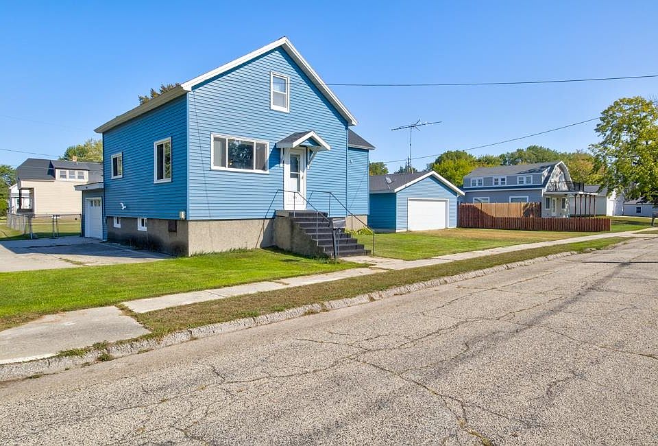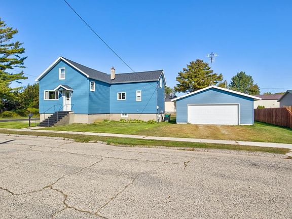 Marinette city affordable 3 bedroom, 1 bath with many updates. Location, location, location! Large corner lot with partially fenced yard and a view of the water out your front door. Many updates in the last 11 years, including siding, roof, windows, furnace, central air and hot water heater. Kitchen with abundant oak cabinets, eating island and appliances. Bathroom includes walk-in Mad City 3-year-old shower. 2 detached garages (15x22 and 26x33). Hardwood floors under carpet on main level. One bedroom and bath on main level. Upper level has 2 bedrooms (308 square feet) with no direct heat. Full basement. 200 amp CB.