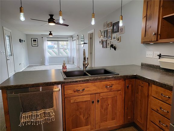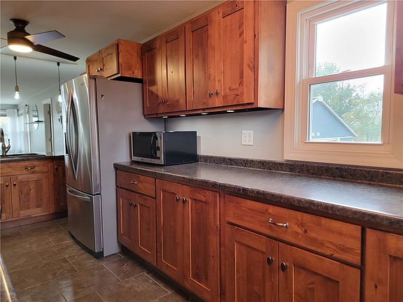 This charming 3 bed, 2 bath single-family home on 1.49 Acres and includes many modern updates, and significant renovations. Interior remodel in 2009 with updated eat-in kitchen, completely renovated bathrooms and new roof and siding in 2016. This property offers 1,184 square feet of comfortable living space with a blend of modern features and original charm. Custom hardwood kitchen cabinets, stainless steel appliances, replacement windows, and updated bathrooms with an en-suite master bring a balanced touch to original hardwood floors inside, while the oversized attached garage and bonus room offer indoor storage or enjoyment space with convenient access to the covered patio which opens to a heated above-ground pool. The clean renovated basement offers even more storage and is built for a kitchenette. The oversized lot offers space to play, relax, or entertain, and extra storage or workshop space in the secure high-cube container. Absolutely move-in ready, take a look today!