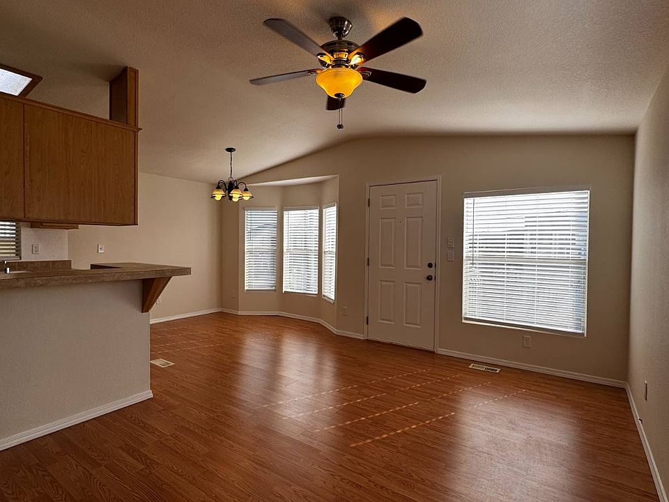 Backyard spaceNew toiletsNew paintNew carpet in bedroomsNew mirrored closet doorsVaulted ceilings