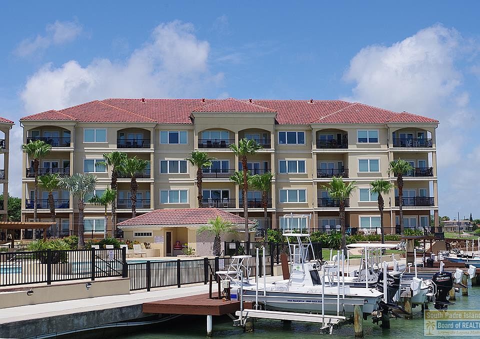 Virtual Tours & More - bit.ly/pds-3303 Discover coastal convenience in this waterfront condo, perfectly situated within a gated marina community designed with the waterfront lifestyle. This 3rd floor unit features an open-concept living/dining/kitchen space, all with views of the bay, so you're never far from the water, even when indoors. Enjoy the sunrise from the balcony, or watch the fireworks over South Padre Island. The kitchen has granite countertops, stainless steel appliances, & tons of cabinet space. The primary bedroom includes balcony access, walk-in closet, & an ensuite bath w/dual sinks & an oversized jetted tub/shower. Additional features include an in-unit washer/dryer, a 5'x7' exterior storage room for fishing gear & beach toys. Most importantly, this unit includes a deeded boat slip. Community amenities include a heated pool, hot tub, gated entry, elevator, & assigned parking. This property offers everything you need to enjoy life on the water, right where you belong.