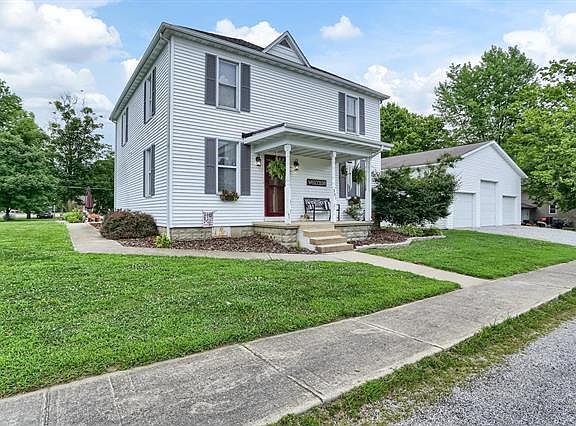 Check out this absolutely adorable 5 bedroom 2 bath home! Huge corner lot with large patio and above ground pool. Giant 3 car garage/Pole barn! Once you walk in you will instantly fall in love with how homey and open this home feels. New paint, main level floors, shiplap, trim, quartz counter tops, brick back splash, stainless steel appliances and bathrooms have been remodeled. Main level master with barn doors on the double closets. Up stairs has 4 more bedrooms and the second bathroom. Don't miss out on this large adorable home!!