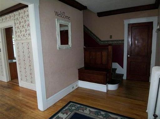 Gracious Lady awaiting a family. Spacious rooms, insulated windows, siding, newer roof, solar panels, and much more. The four bedrooms on the second floor have massive closets, a spacious bathroom, and hallway. The kitchen has a bulter pantry, plus a pantry, with granite counters and many cabinets, plus an eatin area. The dining room has some wonderful builtin cabinets, & is a good size. The living room has a fireplace & a beamed ceiling. 3rd floor in law apt has 2 bedrooms and a egress.