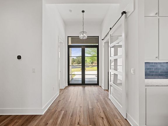 Welcome to 301 Eocene! Conveniently located on the Tee box of Ram Rock #9 looking down the fairway, on a large 1/2 acre lot facing SSE. The home aims to bring several features homeowners want. Starting with a spacious 2,686 square feet of living space, a 3-car garage plus a separate 3rd door golf cart garage entry, 3 bedrooms dedicated bathrooms, plus a powder room & office. Designed with comfort in mind, the circle driveway on the corner gives ease on the drive up to the home. Other home features include a wide metal double door entrance, 10 foot ceilings throughout, a beautiful kitchen with walk-in pantry, a 5’ x 10’ Silestone kitchen island, custom cabinets, luxury vinyl tile flooring throughout, ceramic tile floors and granite countertops in all bathrooms and laundry, a large feature fireplace with 3 Deckton slabs, a 10 foot high glass sliding door opening onto the 24’ x 14’ back covered patio and outdoor kitchen. The luxury primary bathroom has matching vanities and sinks, a large wet room, curbless shower w/ bench seating and freestanding bathtub. To promote energy savings, the home utilizes spray foam insulated 2x6 exterior walls. Custom designed by Barrineau Architects and completed June 2023. Other upgrades include, Kitchen Aid refrigerator, 36'' Thor Commercial Range & gas grille and mini refrigerator, outdoor remote drop shade, tiled back patio, tinted windows with blinds, water softener and fenced backyard.