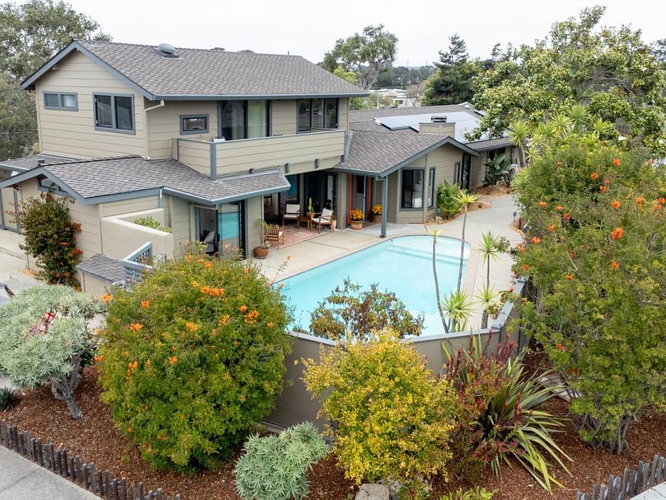 Nested in the heart of Montereys sunbelt, this remarkable one-of-a-kind home offers endless versatility and charm. First time on the market, this undeniably captivating home was originally designed for a multi-generational family and now spans 2,700 square feet featuring for bedrooms, four baths, two kitchens, four living/flex rooms, two car garage, laundry room, in-ground swimming pool, limitless storage and an abundance of unique features just waiting to be discovered. Every corner of this home tells a story. The main floor was reimagined to offer an engaging connection to the outdoors, where most rooms open to a serene private walled oasis. The former art studio, now a cozy guest unit, warmly welcomes visitors with a private entrance from the driveway. Ascend to the upper level where a charming separate living unit boasts a grand walled balcony, overlooking the pool and courtyard below. These spaces can remain private for extended family, guests, and live-in help, or serve as rewarding income rentals. Perfect for those seeking room to grow or who dream of a vibrant live-work lifestyle, this home is ready to welcome your family's story.