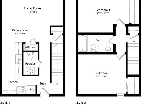 Our 780 sq. ft. 2 bed/1.5 bath townhouses start at $669/month.