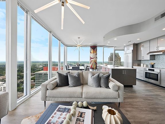 Claim your piece of the Raleigh skyline on the 27th floor of PNC Plaza—one of the City of Oaks' most iconic addresses. This stunning 2-bedroom, 2-bath corner unit showcases sweeping southeastern views that stretch from the vibrant Wilmington Street below to the distant horizon. The completely renovated kitchen boasts quartz countertops, expanded storage, an induction cooktop, and top-tier appliances, including Sub Zero refrigerator—perfectly blending form and function. The open-concept living area flows seamlessly to a spacious balcony, also accessible from the primary suite, ideal for sunrise coffees or evening city lights. The expansive primary bath offers granite counters, dual sinks, a tiled walk-in shower, and a soaking tub. Both bedrooms feature walk-in closets, offering ample storage, especially for a high rise condo. Enjoy resort-style living with 23rd-floor amenities including a pool, fitness center, clubroom, terrace, and more—all just steps from City Market, Moore Square, dining, and entertainment.