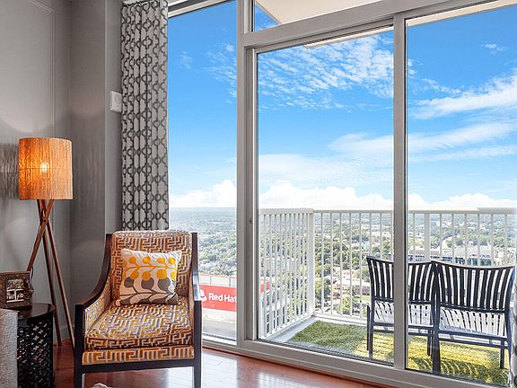 Experience the best of downtown Raleigh from this stunning 32nd-floor, 1-bedroom, 1-bathroom condo. With an open floor plan, floor-to-ceiling windows, a private balcony and an elevated walk in closet, this condo is designed for modern city living. Residents enjoy exceptional amenities, including a rooftop terrace with a pool, fire pit, and grill, plus a fitness center, media room, conference room, communal kitchen, and game room. A designated parking spot in the secure deck is included, along with a storage unit. The secure lobby at the main entrance provides added peace of mind. Move-in ready - seize the opportunity to experience vibrant Raleigh right at your doorstep!