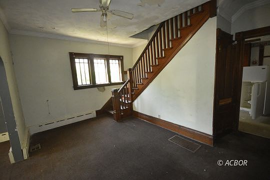 Potential MONEY MAKER. This very large home could be a great investment property with a little sweat equity. Featuring two very large units, each with 3 large bedrooms, spacious living and dining areas, a full bath and a kitchen.  Kitchens and baths need freshened up and there's some drywall and painting to do in these units. There is also an efficiency/studio apartment that is move in ready or could also be upgraded to bring in more income. Out back is a huge 2 level garage/building. This could be great work or storage space. Live in one unit while you fix up the others or convert it back to one very spacious family home. House is solid and appraised much higher but will not go FHA or VA due to the items that need updated/upgraded.