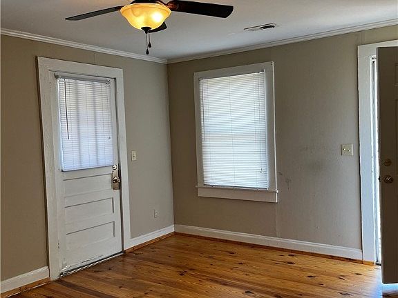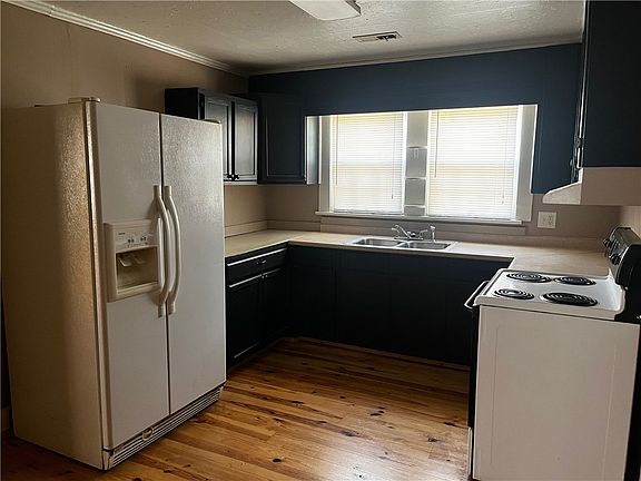 Great starter home with 3 bedrooms and one full bath. Beautiful pine hardwood flooring. Electric stove and refrigerator to remain. Large level fenced yard with outbuilding ( no value given). Great for children or pets. Home has been previous rental and owner has never lived in the home. Fireplaces to do work and have been closed off. Home on almost one acre. Public sewer and public water, some tilt out windows. Crawlspace