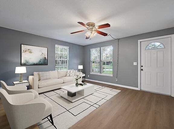 Brand new 2025 roof, downstairs laminate flooring and professionally installed gutter system for enhanced drainage. No Poly pipes. Welcome to this CHARMING, pond-front 2-bedroom, 2-bathroom end-unit townhome located in the highly sought-after community of Jupiter! Offering a tranquil setting with serene pond views and a fenced backyard, this starter home is perfect for those seeking comfort and convenience. With its desirable end-unit location and proximity to Jupiter High School, this property is a must-see! As you step into the home, you're greeted by a bright and open living space with large windows that let in an abundance of natural light. The living and dining areas flow seamlessly, creating a welcoming space perfect for relaxing or entertaining.
