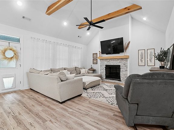 This professionally built 2-story home offers 5 bedrooms and 3 bathrooms with a three car garage providing ample space for families or those needing extra room for a home office or entertainment area since the fifth bedroom could also be a bonus room. The property features a split open floor plan with vaulted ceilings and a breakfast nook, creating a bright and airy atmosphere. Has a privacy fenced backyard and covered back patio to enjoy or entertain. Comes with granite counters, wood beams, modern fixtures, LED lighting, pantry, gas range, fireplace with gas logs, blinds, shutters, lots of walk out attic storage, ring doorbell, and so much more! It blends modern elegance with warm, inviting character. The open concept layout is perfect for entertaining or everyday living. Located near Eliana Chacon Memorial Park, you can enjoy easy access to outdoor recreational activities. This won't last long!