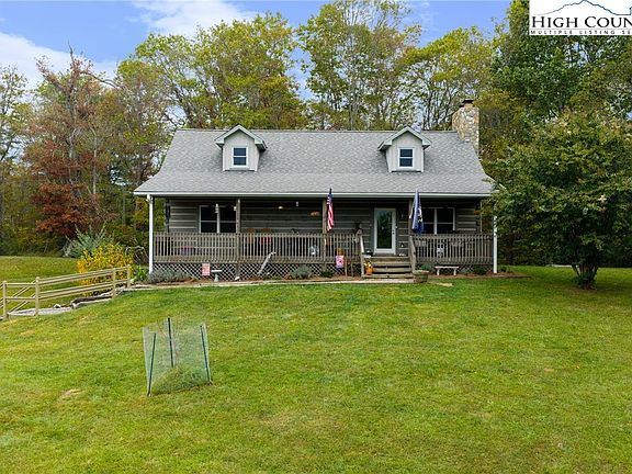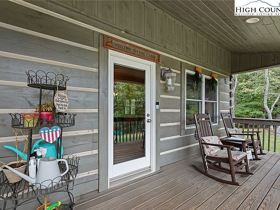 This charming log cabin, situated on 0.98 acres, is nestled on the North Carolina and Virginia border. It features a covered rocking chair front porch, perfect for enjoying the beautiful, changing mountain seasons and pastoral views. Inside, you'll find an open-concept floor plan with wood flooring and tongue-and-groove accents on most walls and ceilings. A beautiful, stacked-stone, Propane fireplace enhances the log cabin ambiance and provides warmth. This property offers over 1,700 square feet of living space, with a main-floor laundry, two bedrooms, and two full bathrooms, including an en-suite primary bath. The lower level provides a spacious den with a wood-burning fireplace and a propane wall unit heater. There is also an oversized one-car basement garage that can accommodate both a vehicle and an ATV. A screened-in porch spans the back of the house, offering wooded views and opportunities to observe wildlife. It's an ideal setting for gathering with friends and family or relaxing to the sounds of nature. Approximately 20 minutes to Jefferson. Both short-term and long-term rentals are permitted. **NEW** New American Standard heat pump installed in 2020, whole house generator 10/24, New kitchen refrigerator 6/25, 2 new commodes, new primary walk in shower, new tankless water heater, and new gutter leaf guards.** Please note that this property is owner-occupied, so we kindly request a minimum of one hour's notice for all appointments.
