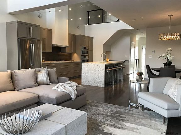 Stunning space in a Live/Work/Play community which includes a front row seat to some of the most beautiful scenery in the Capital District. High level standards complete the elegant atmosphere. Parklex exterior. Custom elevator. Amenities include use of our on-campus gym and pool. The townhome style condos are on the Mohawk Hudson bike path, kayak rentals are available, and slip rentals at the marina accommodate up to 40-foot boats. Rivers Casino provides free concerts, at the amphitheater during the summer. Finished interior pictures shown are model Unit 301. Superior Condition, Custom Kitchen Feature