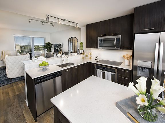 - Exterior features: Cabana, Coffee Bar, Community gas grill/BBQ area, Conference Room, Demonstration Kitchen, Fitness On Demand, Game Room, Great guest parking, Modern Resort Style Design, On-Site Maintenance, Online Move-In Experience, Online Rent Payment, Online Resident Services, Onsite Property Management, Pet Friendly, Plank Flooring Throughout, View Type: East View, WiFi Available