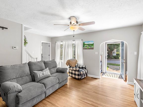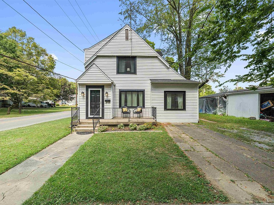 North-side cutie coming right up! This completely updated 3 bedroom, 2 bath home is ready for its new owners. This home does offer the option for a main-floor primary bedroom suite, if needed. The primary bedroom features newer carpet, and the bathroom features newer flooring, vanity, mirror, light fixture, and some shower tile and updated shower surround. The first thing you will notice upon entering this home is the stunning re-finished, lighter hardwood flooring. This home has been tastefully updated to match today’s trends, while keeping some of the original charm, such as the hardwood flooring, the brick fireplace with a new custom-built mantle, an upstairs built-in linen cabinet, and everyone’s favorite arched doorways. There’s also a dining room that could easily work as a flex room if another room is needed. The kitchen is the real deal, featuring new white cabinets and new fixtures, stone backsplash, Quartz countertops, and Whirlpool Stainless Steel appliances. The upstairs features the second bathroom, with a fully tiled shower, updated flooring, vanity, mirror, and light fixture. The upstairs bedrooms feature the same refinished hardwood, and the second bedroom upstairs (currently being used as the primary) can easily fit a king-size bed. Some attic space has been converted into a larger closet in this bedroom. While the laundry is in the basement, it is spacious in size and offers plenty of room for hanging rods or a folding table. The unfinished side of the basement offers plenty of storage space. The electrical and some plumbing have been updated. The backyard is a good size and nice and flat. It is fully fenced in, with half of it being the white vinyl fence. The exterior of the home aligns with today’s trends, featuring classic white vinyl siding, black accents, and black windows.