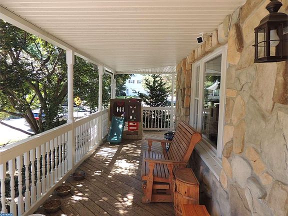 New and Improved and Reduced! A 4 bed 2 ~ bath split level home in Huntingdon Valley is for sale. This is a 4 level split expanded and rebuilt in 2005 features a rare wraparound wooden front porch. The home has a country/modern feel. The lot is larger than most in the area, ~ acre. Enter the homes main level thru a newer front door with key pad lock, use the double coat closet next to the weather tight ceramic tile floor apron. You can feel right at home in the large recently painted living room with cathedral ceilings. A large bow window lets in all natural light you want and an open 'L' shaped floor plan leading into a formal dining room both rooms with new flooring (April 2016). The kitchen features cherry cabinets, stainless steel appliances, 5 burner stove, granite countertops, breakfast bar, ceramic tile backsplash, double sink, built-in dishwasher, new 12'x24' ceramic tile floor (April 2016). High hat lighting and ceiling fans are throughout this home. The dining room has double French doors leading to an unbelievable 4 season rec/sun room with knotty pine walls and ceiling w/ceramic tile floor heat, c/a, wrap around windows, skylights, gas fireplace & built in table and chair nook with storage. There is a pass through window to serve guests right from the kitchen. Double doors exit to a level fenced back and side yards. On the upper level there is a magnificent master bedroom suite w/ real wood wainscoting, a bay window with bench seat, a huge walk in closet, and a master bath with double sink and whirlpool tub. 2nd & 3rd bedrooms both have double closets. Ceramic tile hall bath. The 4th bedroom, another bonus room with walk out exterior door& powder room is located on the lower level, above, not in the basement. The basement is rough finished with its own separate bonus room. New dimension shingle roof, windows, doors, hot water heat & C/A, for the best of all worlds, and thick cedar shake type vinyl siding. Well insulated for energy efficiency. All this and a one car garage with a new door and an oversized stamped dyed concrete driveway, security system with cameras, in ground lawn sprinklers. Pull-down steps to the storage attic. Convenient to everything. Located on a very quiet street and award winning Abington schools.