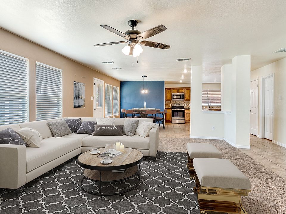 Looking for room to breathe and a community you’ll love? This spacious 4-bedroom, 2.5-bath two-story home is perfectly tailored for a growing family. Located on a desirable sunlit corner lot in top-rated Woodbridge, this house truly has it all. The heart of the home is the bright, open-concept living space, where a wall of windows and a cozy fireplace create the perfect gathering spot. The gourmet kitchen keeps everyone connected, featuring a central island, abundant storage with a generous pantry, and seamless flow into the breakfast area. Downstairs offers excellent flexibility with a private study for remote work and a dedicated dining room for holiday meals. Upstairs is designed for play and rest. A large Game Room provides the ideal hang-out area, complemented by four well-sized bedrooms. Retreat to the Primary Suite, a true sanctuary with a gorgeous en-suite bath and an enormous walk-in closet to keep everything organized. Enjoy summer BBQs on the covered patio and privacy in the fully fenced backyard and a new roof in 2025. The Woodbridge lifestyle is second to none, offering a variety of amenities including multiple pools, parks, walking paths, and ponds. Plus, with Cox Elementary right in the development, the morning school rush is a breeze. This is more than a house—it's the ideal setting for a vibrant family life. This highly sought-after home won't last long—schedule your private tour today and live the dream.
