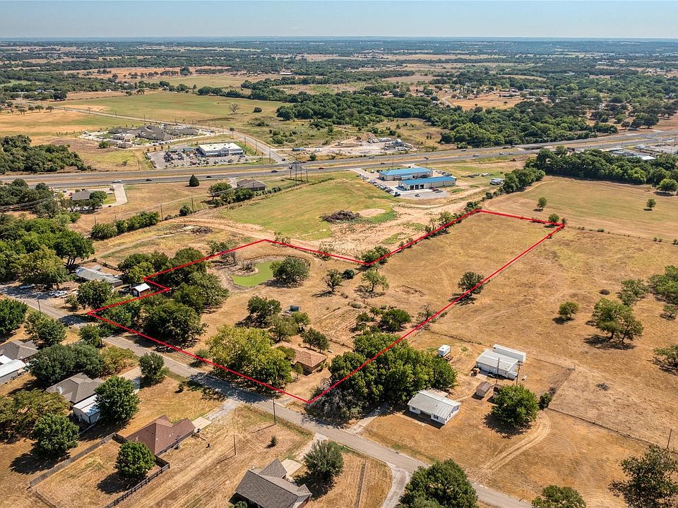 Possible Development Potential... 6+ Sandy Loam Acres of Beautiful Land Outside the City Limits with Nearly 400 Ft of Road Frontage and City Style Comfort Only Minutes Away! 3 Bedroom, 2 Bathroom Country Home. 30x30 Detached Workshop-Garage with Electric Plus Garage Door Opener, 12x12 Storage Building Plus a Fenced Chicken Coop. Room for RV or Boat Parking. AG Exempt Property is Fenced and Cross-Fenced with a Beautiful Garden That Includes a Pond & Apricot, Peach & Plum Trees. No HOA. Back Pasture is Cleared and Fully Fenced, Perfect for Horses, Cattle, or any Other Livestock. Open Concept Living, Dining, and Kitchen with Hardwood Floors and Ceramic Tile. Large Primary Bedroom with En-Suite Bath. Separate Utility Room Includes Room for Freezer. Mature Trees in Front Yard Provide Shade. Covered Back Porch is the Perfect Place to Enjoy this Peaceful Country Setting. Check with Parker County for any Development Questions.