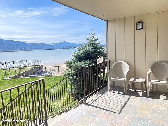 WATERFRONT CONDO at Condo del Sol, in very desirable South Sandpoint. This unit is steps away from the water and offers BIG lake and mountain views. 1 bedroom, 1 bathroom unit. WALK-OUT to lawn, to lake. Open Living/Kitchen concept with breakfast bar. Stackable washer & dryer. Complex also has 2 community pools, 2 tennis courts, volleyball court, basketball slab and 6 BBQ's. Easy walk to downtown, bike paths, City Beach & a short drive to Schweitzer Mtn. Lots of green space. Perfect for investment, year-round living or your vacation getaway.