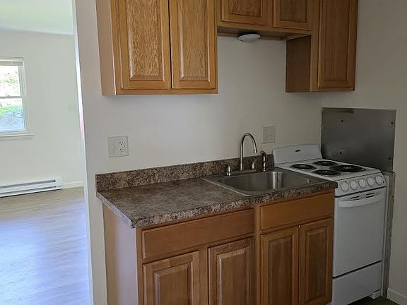 First floor, one bedroom apartment. Freshly painted and remodeled, brand new hardwood floors throughout the apartment. Newly remodeled bathroom, kitchen and living room. This cozy apartment is perfect for a single person or couple. Very close to local schools, shopping, grocery stores, and the local hospital. Owners pay for water, sewer and trash. Maintenace is provided, and lawn/ snow removal is provided. Tenant pays all other utilites On site coin operated washer and dryer are in the basement of adjoining building.