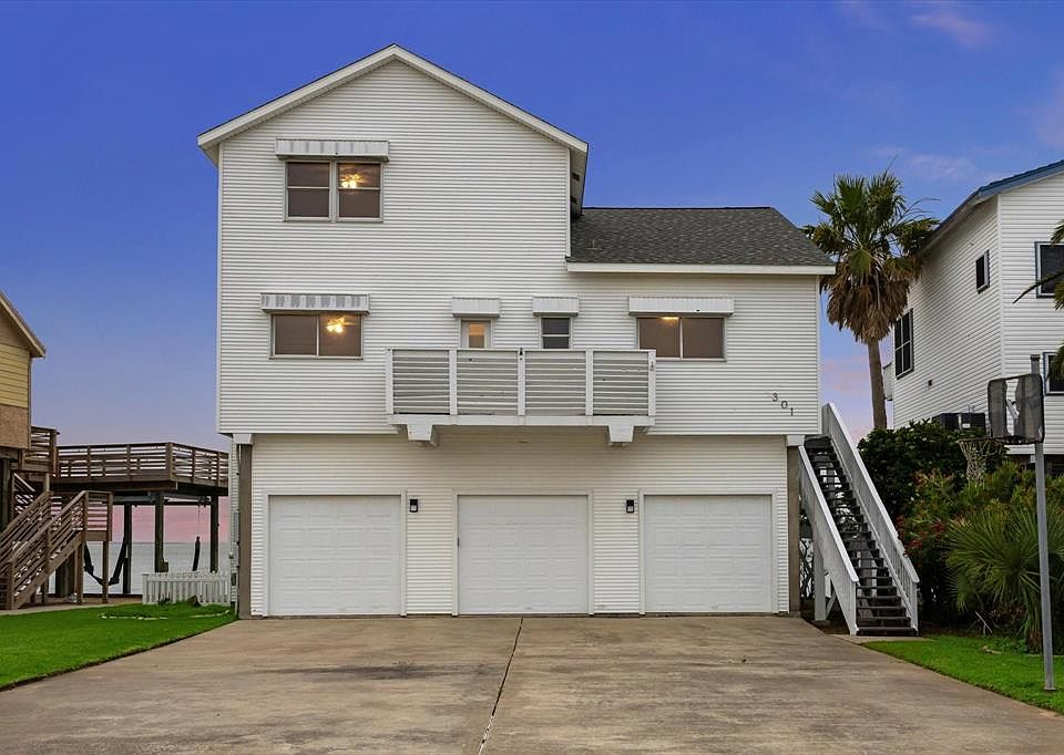 Welcome to this stunning 4-bed, 2-bath bayfront home on Tiki Island! This gorgeous property offers the perfect blend of luxury, comfort & practicality, breathtaking sunset views. Direct access to West Bay, perfect for those who love water & outdoors. Roll-down shutters, wet bar w/ice machine, spacious downstairs designed for hosting, plus a large deck to enjoy the serene surroundings. Elevator to all floors, massive kitchen, updated, reverse osmosis system, granite, cabinets, tile flooring living/dining/kitchen, creating an elegant & contemporary atmosphere. Central vac, whole-house dehumidifier & whole-house surge protector. Sprinkler system & should have room for a pool. 3-car garage, storage & charger for your electric vehicle. This home has been meticulously updated. A prime location, modern amenities & gorgeous sunsets, this property is the perfect retreat for anyone looking to enjoy the best of bayfront living. Don't miss your chance to own this incredible waterfront property!