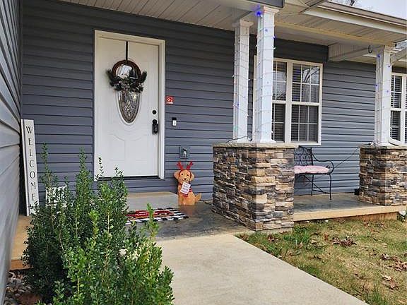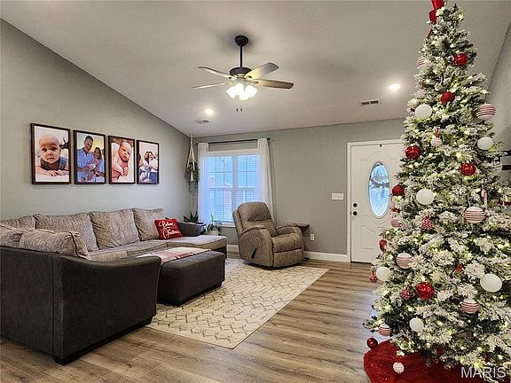 This craftsman style home has an open floor plan with 3 bedrooms, 2 bathrooms and a 2 car garage. With the it's all electric features, vaulted ceilings in the main living area, a split-bedroom floor plan and practical space of a pantry and laundry room, the home offers a perfect combination of comfort and functionality. The primary suite features coffered ceilings, walk-in tiled shower, jetted tub, double vanity and a 16' x 5' walk-in closet. This low maintenance, energy efficient home was built in 2022. The property is the first corner lot entering Magnolia Lane Subdivision, backs to woods and has a storage building in the backyard. Oak Grove School District. 301 Kearbey Drive, Poplar Bluff.