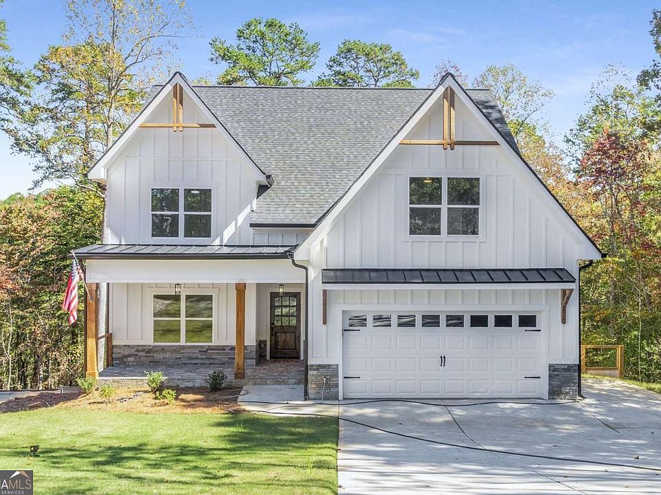 Your search for a life of modern elegance and serene tranquility ends here-welcome to this stunning new construction home in the exclusive, gated Rivers subdivision, where over 2,500 square feet of beautifully finished living space awaits, complemented by a full unfinished basement ready for your personal touch. Step inside to discover a bright and open main level that masterfully blends style and function, featuring a luxurious main-floor master suite that serves as a true retreat with its spa-like en-suite bath, dual vanities, sleek tile shower, and a massive walk-in closet, alongside a versatile private office just off the foyer. The heart of the home is an inviting, vaulted great room, warmed by a cozy fireplace and flowing seamlessly into a chef-inspired kitchen equipped with a large island, a walk-in pantry, and a sunlit dining area that spills onto a covered rear porch and grilling deck-your perfect stage for year-round entertaining. Upstairs, three generously sized bedrooms, each with walk-in closets, and two full bathrooms provide ample space for everyone, while practical luxuries like a mudroom with built-ins and a walk-in laundry room add effortless convenience. Nestled on a peaceful, wooded lot backing to a community pond ideal for fishing and relaxation, this residence also grants you access to the private park on the Chattahoochee River, setting the scene for endless outdoor adventures-this is more than just a house, it's a crafted lifestyle of quality and comfort you won't want to miss.
