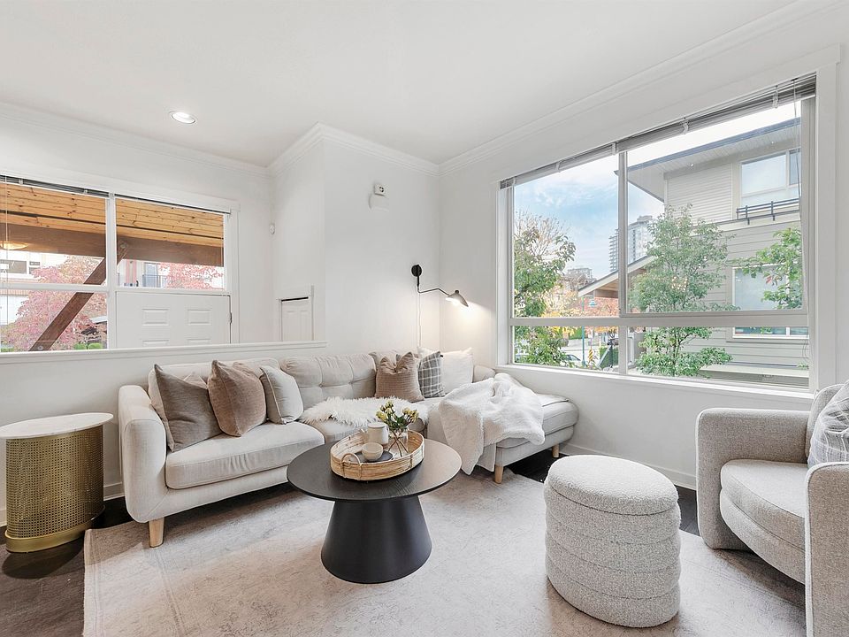 Freshly painted end-unitBright open-concept townhome livingPrivate-enclosed backyardOverheight ceilingsFloor-to-ceiling windowsLarge islandCustom millwork