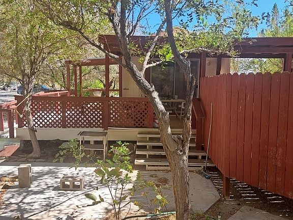 Charming 2-Bedroom Retreat on Four Spacious Lots. Just outside the scenic town of Lone Pine, this inviting 2-bedroom, 1-bath home sits securely on a permanent foundation and spans four combined lots, offering both privacy and room to roam. Exterior & Outdoor Living includes attractive curb appeal with well-established trees providing natural shade. Large deck with easy-entry ramp, perfect for relaxing or entertaining. Jacuzzi hookup ready for your spa or hot tub. Bright, welcoming living areas cooled by 2 swamp/evaporative coolers. Step-in walk-in bathtub for safe, accessible bathing. Appliances included for a move-in-ready experience. Multiple outbuildings for storage or workshop space, with a generous parking pad and RV parking for guests or extra vehicles. As an added bonus, an Airbnb permit is already in place, ideal for investment or part-time rental. Whether you're seeking a serene full-time residence, a vacation getaway, or an income-producing property, this home blends accessibility, comfort, and outdoor enjoyment.