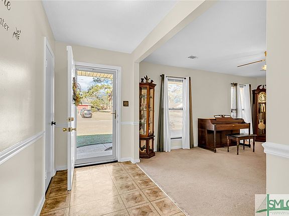Brick ranch in Savannah's Southside on an expansive lot with a relaxing backyard. This meticulously maintained home is located in Leeds Gate, no HOA and sits on over a quarter of an acre. The floor plan is a traditional ranch with a foyer, living room and dining room off to the left. The kitchen is a galley kitchen with a breakfast area. The family room is off the kitchen and features an original electric fireplace. The three bedrooms are down the hall and the primary bedroom has an attached bathroom with a tile shower. Roof is 8 years old and HVAC is 4 years old. Laundry room off kitchen as well as additional flex space (formerly the garage). There is a storage room behind the garage door that is also accessible from the flex space. Landscaping in front and back of home along with a deck and gazebo with power. Fully fenced in yard. Workshop in back with power. Workshop being sold in AS IS condition.