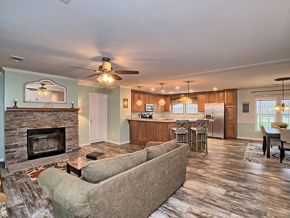 This 4B/2B DWMH is move-in ready and conveniently located to all of town's amenities. Sitting on a full concrete foundation, inside the home you will find an open concept kitchen/living/dining. Master bedroom, separate from other three bedrooms, has a large attached bath with tiled walk-in shower, two lavatories and a walk-in closet with built-ins. A built-in office area is located in the hall and a large utility room with sink and counter space is just inside the back door. Plan your nights in with the featured Home Theater Room with wet bar! Outside you will find a fenced yard, nice covered porch on the front of the home and a full-length partially covered porch on the back, a double carport with storage room, and RV hookup. The home offers many upgrades including 2x6 studs, laminate flooring, double paned windows, sheet rock, baseboards and crown molding throughout. All this on approx. one-half acre. Give us a call today to schedule your tour!!