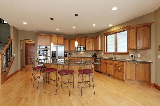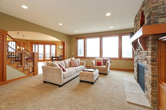 Beautiful former model home overlooking the 18th hole on the prestigious Troy Burne Village Golf Course. You will love the large open design with natural cherry wood millwork throughout. Enjoy the 1 acre setting on the quaint front porch or the screen porch in the back that overlooks the golf course. Living room features wood trimmed archway and a stone fireplace with custom built-ins. All the amenities you're looking for in the kitchendouble oven, stainless steel appliances. Granite counter tops and a curved center island with seating. The mudroom has built-in bench and lockers. The upper level has 3 bedrooms plus a large bonus room that could be 4th bedroomjust needs a closet. The spacious master suite has a private bath with separate walk-in shower, tub and double sink vanity. The 38 x 14 bonus room gives you so many opportunitiesa bedroom, office, play room and more. Convenience of the laundry room on the same level as bedrooms. Great use of windows on all levelslot of natural light throughout. Walkout lower level is unfinishedplenty of space for future rooms. Wonderfully landscaped with extensive boulder retaining walls and two patios. Enjoy everything the association has to offer ~ lit walking paths and a park & pavilion area overlooking the scenic St. Croix River.