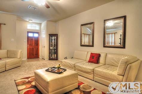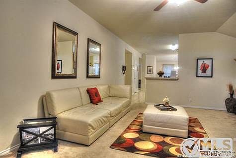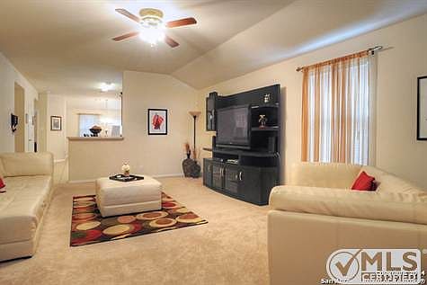 Wonderful One Story Home in the Community of Cibolo Valley Ranch and ready for move in! Island kitchen and open floor plan. Master bedroom has Double vanity, Garden tub with whirlpool and separate shower. The outside is low maintenance landscaped with a covered patio. The Community does include a Park and Playground. This location has easy access to San Antonio Military Medical Center, Randolph Air force Base, Fort Sam Houston and Major Roads.