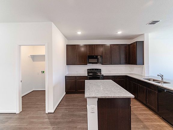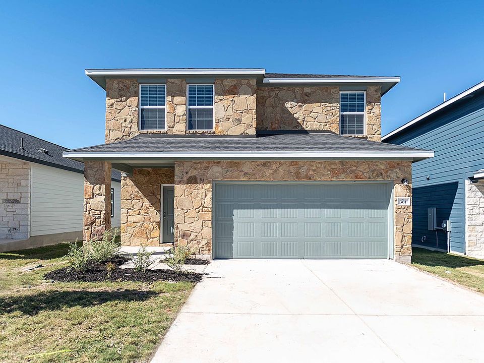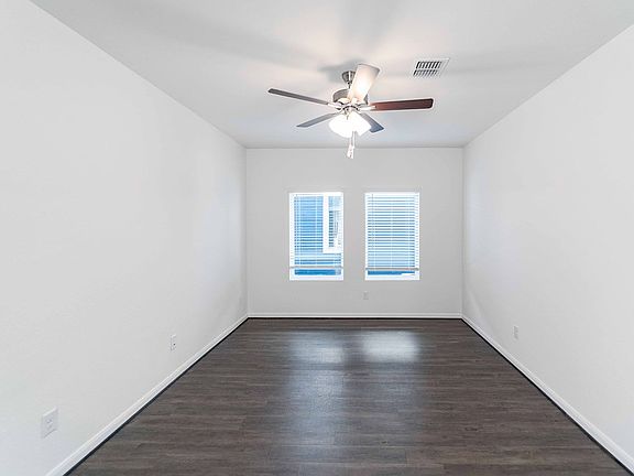 The delightful Ash floor plan is a sprawling, two-story design that is full of character.. The exterior of the home is just as beautiful as the interior since the home will have a two-tone paint selection, and an exclusive landscaping package including shrubs, a caliper oak tree, and a yard that is fully sodded. Entering from your front porch, you are greeted by an elegant foyer with vinyl plank flooring that your two-car garage lies beside. Across the foyer is your convenient powder bathroom featuring a white pedestal sink and decorative mirror that flows right into your open-concept family room. The massive family room is perfect for entertaining guests and is boasting with ample amount of space. The smell of fresh cookies baking can be experienced from the family room, since the kitchen is opened up facing the living area. The expansive kitchen area is completed with granite countertops, beautiful flat-panel birch cabinets, designer light fixtures, and industry-leading appliances. You will love having the ability to install a kitchen island in the center of the kitchen, if you are needing more counter space. Speaking of more space, your oversized walk-in pantry will come in handy when you need to store all your food, spices, and dog treats. Integrating with your kitchen is your welcoming formal dining space with entry to your backyard in the corner of the room. Giving your backyard added value, you have the option of including a sizable covered patio! Adjacent to your form