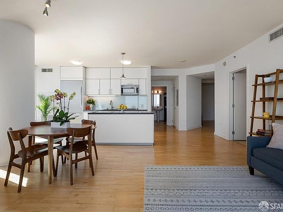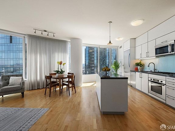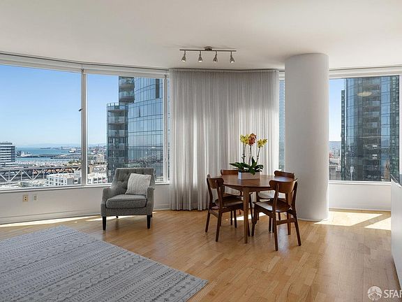 Experience elevated city living in this upgraded 2-bedroom + den, 2-bath home at The Infinity, one of San Francisco's premier high-rises. This sophisticated residence features sweeping water views through dramatic wall-to-wall curved windows, an expanded kitchen island, Studio Becker cabinetry, granite countertops, Bosch appliances, and hardwood flooring throughout. The light-filled bedrooms include a serene primary suite with water views, a spa-like bath with dual vanities, soaking tub, and walk-in shower. Enjoy world-class amenities including a 5,000 sq. ft. gym, remodeled club lounge, private theater, business center, and 24-hour doorman. Just steps from the Embarcadero, Salesforce Park, dining, and transit, this is South Beach living at its finest. Tenants responsible for move in/out fees