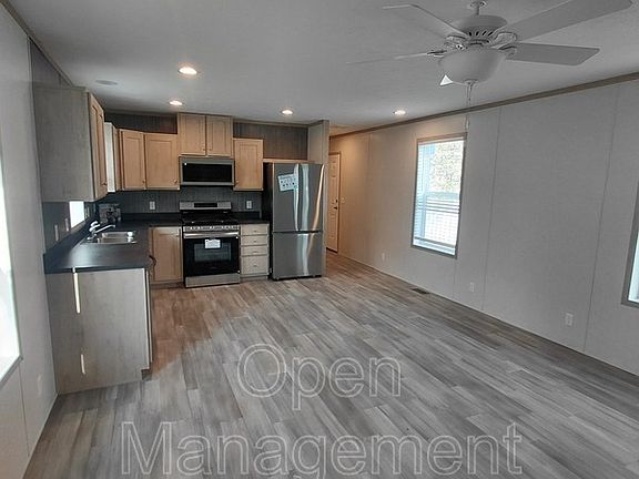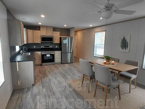Welcome to this beautiful 3-bedroom, 2-bath home in the inviting Sun Valley Estates Mobile Home Community in Jackson, Michigan. This thoughtfully designed home offers a spacious open layout that seamlessly connects the living room, kitchen, and dining area-making it perfect for everyday comfort and easy entertaining.