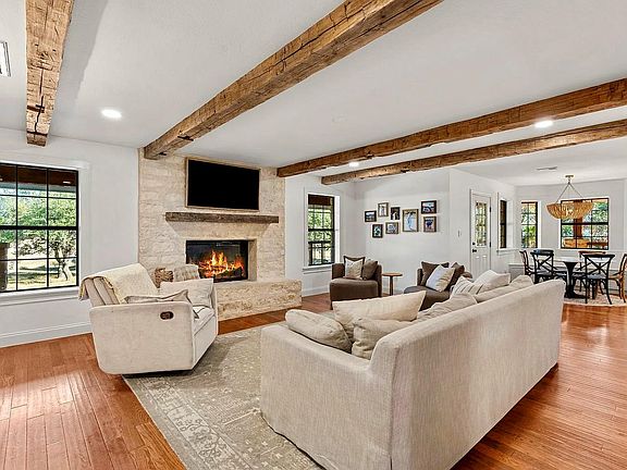 Located within the acclaimed Dripping Springs ISD, this home perfectly blends comfort, charm, and functionality. The thoughtful layout features 3 bedrooms, 2.5 bathrooms, and a spacious downstairs game room that can easily serve as a bunk room or guest suite. The open-concept kitchen and common areas showcase custom finishes throughout, centered around a large wood-burning fireplace that creates a warm, inviting atmosphere. The property features a very large open front yard and backyard - perfect for kids to play or a canvas to bring your landscaping or homestead dreams to life. Property Highlights: Custom pool and hot tub (fully fenced) 39,707- gallon rainwater collection system + two additional well or bulk water storage tanks Well system Expansive wraparound porch with multiple sitting areas, grilling station, and fire pit Outdoor living and dining areas ideal for entertaining Play features including zipline, Ninja line, spring-free trampoline, swings, and playscape Chicken coop with chickens included Two outdoor storage sheds Gated and fully fenced, surrounded by an abundance of mature oak trees for shade and privacy Numerous upgrades and fine details inside and out This property offers the perfect balance of country tranquility and convenience, making it an exceptional place to call home.