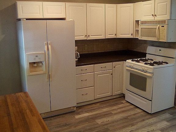 3 bedroom 1 bath, fresh remodel. Has brand new carpet and vinyl plank flooring throughout. First floor bathroom with built in high efficiency large capacity front load washer and dryer included. Spacious kitchen with pantry, all appliances included. Large dining room with lots of natural lighting with built in window bench seating. Medium sized den with flat screen tv mount. Patio with pleasant view of private tree lined back yard which includes a fire pit and the occasional deer passing through. Large modern 2 car detached garage with remotes and electric door openers. All mowing/yard work as well as heavy snow removal INCLUDED with rent!! ...