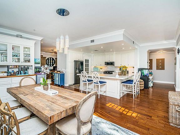 Exquisite, highly upgraded single level condominium w/community elevator, located in the heart of downtown Oceanside, near the beach & the pier and with the harbor to the north. Bicycle friendly & walkable area offering many amenities and entertainment: restaurants, breweries, theaters, museums, weekly Farmers & Sunset Markets, monthly Art Walk & more. This beautiful end unit (no common walls with neighborly units) has an open and bright floor plan; 2 bedrooms suites (2nd one with optional independent entrance), bonus area currently used as an office, 2.5 bathrooms, plantation shutters, a/c & quiet ceiling fans, beautiful wooden flooring and crown molding. Spacious dining area with charming built-in white credenza and serene balcony overlooking the communal gardens. Relaxing living room with electric fireplace, attractive white mantel, built-ins and “tongue & groove” wooden ceiling. Stunning kitchen: white cabinets, white quartz counters, lovely back splashes, high-end appliances, sink with Waterstone faucet & accessories, smart refrigerator, remodeled pantry, reverse osmosis filtration. Large principal bedroom with private balcony, “tongue & groove MDF ceiling, walk-in closet and a gorgeous bathroom with double sink vanity, jets & waterfall tub, large tiled shower, smart bidet-toilet. 2nd bedroom with secondary entrance and Murphy bed for a more versatile use of the space; the lovely en-suite bathroom features single sink vanity, tiled tub/shower combo, smart bidet-toilet. Charming powder room with decorative Wainscot paneling, crown molding and accent wall paint. Upgraded laundry closet with sliding barn door and extra shelves. Complex has interior garden with sitting areas, fireplace, BBQ, SPA, underground garage, elevator, gym and an ample storage unit for each condo.