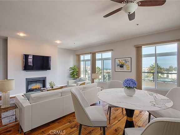 This prestigious top-floor penthouse in Oceanside Terraces, one of downtown Oceanside's most desirable buildings, offers breathtaking ocean and sunset views from its prime location just two blocks from the ocean. The condo features high-tech security, high ceilings, an open chef's kitchen that flows seamlessly into a spacious family room with large windows, maximizing the stunning ocean vistas. You can also enjoy elegant dinners and panoramic city, ocean, and sunset views from the expansive wrap-around balcony. This exquisite residence includes two bedrooms and two and a half bathrooms. The primary suite boasts a large bathroom with a huge walk-in shower, a jetted Jacuzzi tub, and double sinks. The secondary bedroom also features its own private bathroom with a walk-in shower. A separate guest bathroom adds to the convenience. Additional features include hardwood flooring, designer fixtures, state-of-the-art stainless steel appliances, all on one floor with no stairs. It also offers private elevator access, gated underground parking for two cars, and triple-paned windows for soundproofing. The HOA includes gas, all water, trash, security, gym access, a courtyard with a fireplace and BBQ, building maintenance, insurance, roof maintenance, pest control, storage, a spa, and a secured parking structure. As a top-floor penthouse, it offers unparalleled luxury, convenience, and a serene retreat, all while being ideally close to the ocean, fine dining, entertainment, and shopping.