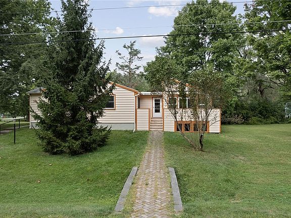 One of the loveliest houses in the neighborhood! This contemporary started life as a mid-century ranch but it grew, first with a 31x15 living room addition, then with a stunning kitchen expansion and great room addition in 2007, designed by local architect Claudia Brenner. The open plan is bright even on overcast days and features cathedral ceilings, skylights, clerestory windows, and elegantly framed views of the half-acre setting. Glass doors in the great room lead to a 24-foot side deck with custom awning, perfect for outdoor dining. The kitchen features warm maple cabinetry, a breakfast bar, miles of countertops and a Marmoleum floor.