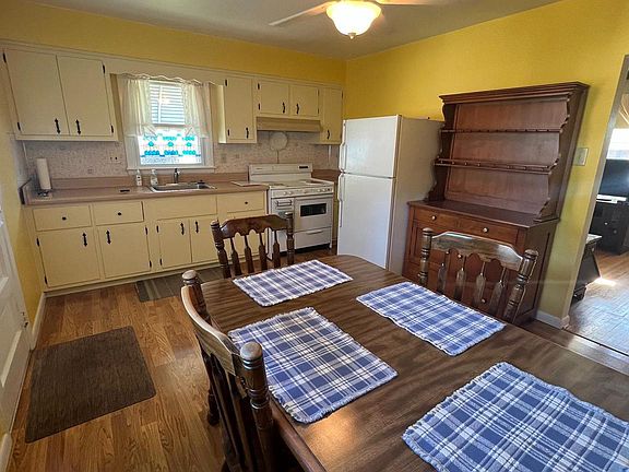 Eat in kitchenDetached two car garageGas heatingElectric rangeHardwood floors