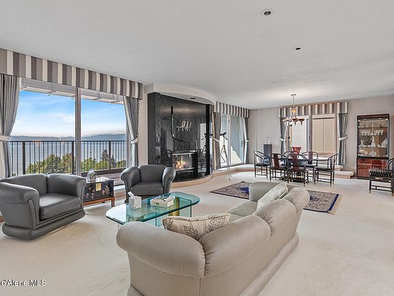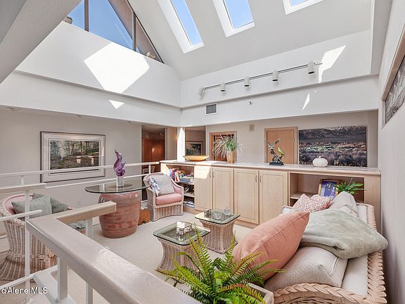 Beautiful Coeur d'Alene North PENTHOUSE With Stunning Lake Views! Spacious 2,984SF with 3BR/3.5BA plus den/office. All 3 bedrooms are private master bedroom suites. This top floor unit has breathtaking views of Lake Coeur d'Alene, resort, mountains and park! This unit comes with 3 parking spaces in enclosed parking garage, expansive trex deck with gas BBQ for soaking up the incredible views and large storage unit. Additional features include: Beautiful granite countertops, solid white oak cabinets, newer stainless steel appliances, large pantry, double wall ovens, new garbage disposal & sink(2025), 2 updated bathrooms(one has luxury vinyl plank flooring), 2 newer heat pumps(2023), 2 new water heaters(2025), newer remote control blinds in living room and bedrooms, newer washer/dryer(2023), wet-bar, gas fireplace and more! Two master suites offer private decks as well as a 3rd ensuite. Enjoy additional light filled sitting area in beautiful atrium/sunroom area with skylights. Open living room with floor to ceiling windows to enjoy the expansive and captivating views. Coeur d'Alene North Condos offer tons of amenities: Heated salt water pool, hot tub, sauna, pickleball courts, gym/work out facility, community meeting room with kitchen and living room area with gas fireplace, woodworking shop and billiard room. Enjoy everything downtown has to offer including amazing restaurants, beach, shopping, CDA resort, park, walking paths, hiking at Tubbs Hill and more. Don't miss this opportunity to own a Penthouse in highly desirable downtown location! CDA North has so much to offer with stunning views, downtown lifestyle and tons of amenities!