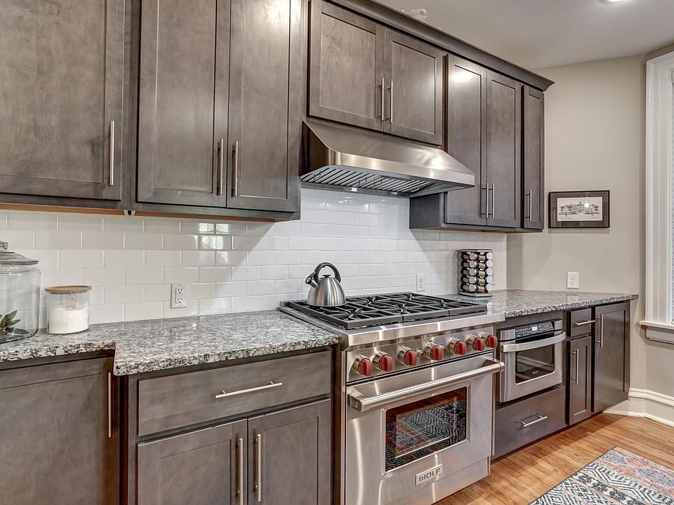 Granite countertopsCustom cabinetsStand showerOriginal oak floorsFull size laundry centerWolf gas rangeFrench door refrigerator