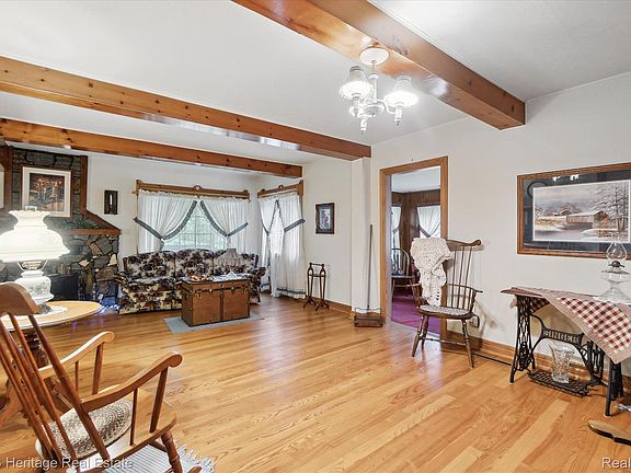 Impressive Custom-Built Home on a Beautifully Landscaped Corner Lot, Step into over 2,400 sq ft of thoughtfully designed living space in this stunning home, ideally located in town and close to schools. Nestled on a large corner lot, the property boasts some of the most impressive landscaping you'll find—offering curb appeal and a tranquil setting. Inside, you're welcomed by a wide-open floor plan featuring a custom kitchen with a bar area, a spacious great room, and an inviting dining area. The main level also includes a cozy living room with a wood stove—perfect for relaxing or entertaining. along with a versatile flex room that can serve as guest quarters, a home office, or additional living space to suit your needs. Upstairs, you'll find two generous bedrooms and a half bath. The property also includes a large garage/barn structure. One section is fully finished, heated, and includes a bathroom—previously used as a storefront, it’s ideal for a home business, studio, or creative space. The other portion remains unfinished, perfect for storage or a workshop. Above, a bonus loft area offers even more potential. Enjoy the private, fenced backyard—ideal for outdoor gatherings or peaceful evenings at home.