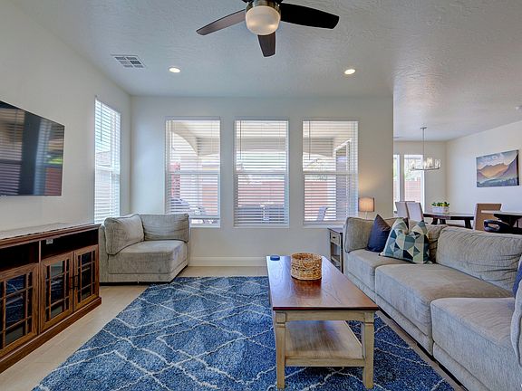 Property Highlights This spacious 5-bedroom, 4-bathroom home is fully furnished and ideal for extended stays, relocations, or traveling professionals. At 3,000 sq. ft., there's plenty of room to spread out. 5 Bedrooms | 4 Bathrooms Dedicated Home Office Quiet space with desk and chair for remote work Gourmet Kitchen Stainless steel appliances, gas range, quartz counters, large pantry, and breakfast bar with seating Open Concept Living & Dining Dining table for 6+, plus bar stools at the island Two Living Rooms Separate upstairs and downstairs spaces, both with cozy seating and smart TVs Laundry Room Full-size washer & dryer in home Two-Car Garage Convenient, secure parking Community & Location Heated Pool & Hot Tub Year-round enjoyment Quiet, Family-Friendly Neighborhood Great for walks or bike rides Prime Location: 5 min to shopping, dining, and grocery stores 10 min to downtown St. George 45 min to Zion National Park Easy access to I-15 for commuting Minimum Stay: 60 days Garage: 2-car attached garage Utilities: Flat $300/month (includes electricity, water, high-speed WiFi, trash) Pricing Monthly Rent: $5,750 Utilities: $300/month flat rate (covers all utilities + WiFi) Deposit: $400