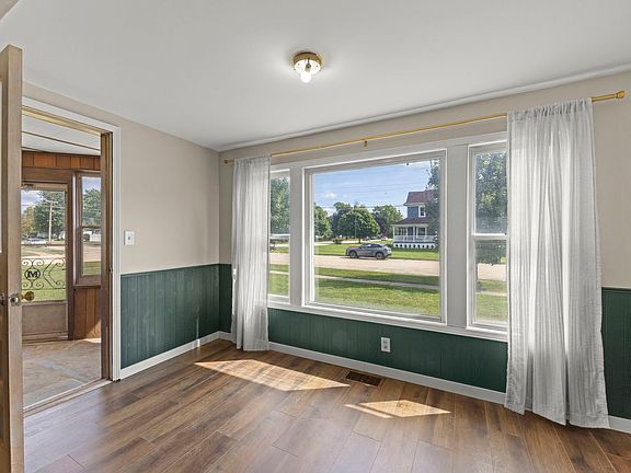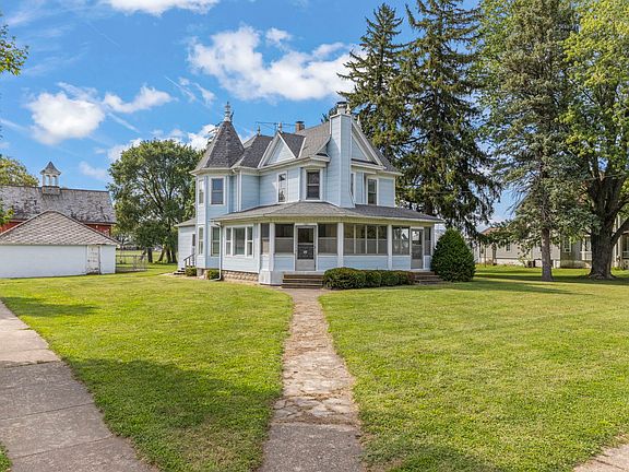 Charming Historic Home with Character & Modern Comforts. Step back in time while enjoying modern amenities in this stately 5-bedroom historic home built in 1928. Bursting with character and charm, this property sits proudly on a spacious corner lot adorned with beautiful mature trees, an inviting setting in the heart of Herscher. Inside, you'll be welcomed by all new waterproof laminate flooring (2023) and a stone fireplace with built-in bookcases, creating a warm and timeless focal point. All new first floor paint (2025). The large kitchen offers an abundance of storage along with a convenient second prep sink, perfect for entertaining and family gatherings. A cozy enclosed front porch provides the ideal spot to relax, while a walkout deck off the kitchen extends your living space outdoors. The home's historic character is complemented by thoughtful features that make it both functional and inviting. With five bedrooms, there is room for everyone or the flexibility for guest rooms, home offices, or hobby spaces. Outside, the property includes a classic carriage barn, a two-car garage, and plenty of space for recreation or gardening. Located just steps away from Herscher schools, this home offers both convenience and community charm making it a rare opportunity to own a true piece of local history.
