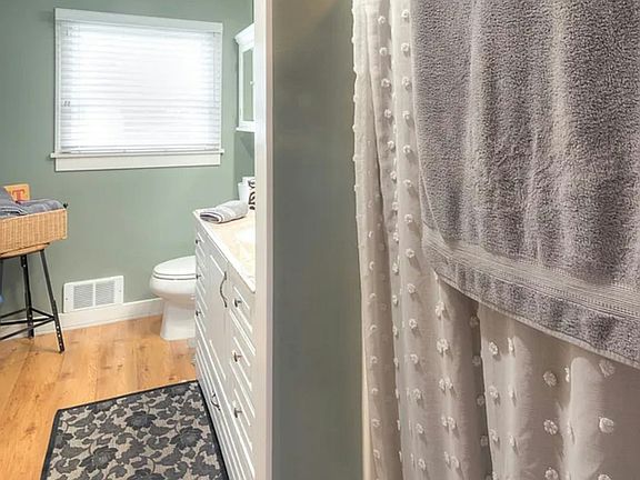 The bathroom is well-appointed with contemporary fixtures and provides a comfortable space for your daily routines. Natural light floods the home, creating a bright and airy atmosphere throughout.