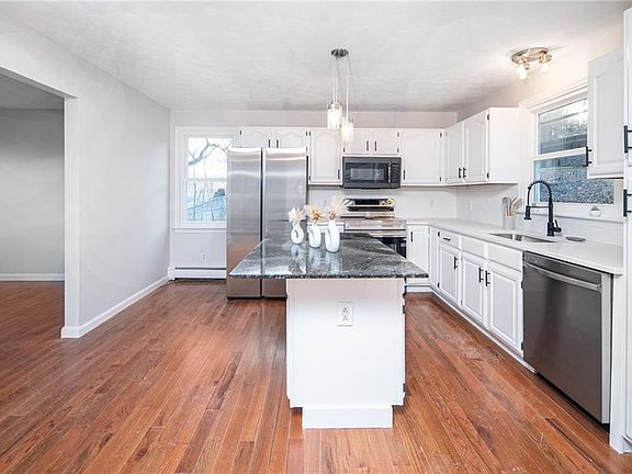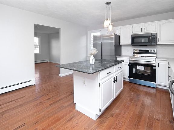 Experience refined living in this beautifully remodeled 4-bedroom, 1.5-bath home, where modern upgrades meet timeless charm. The updated kitchen boasts sleek finishes, premium countertops, and modern appliances, creating the perfect space for culinary creativity. The bathrooms have been thoughtfully redesigned with contemporary fixtures and finishes, blending style with comfort. The first floor features a spacious living room, an inviting dining area, a bedroom, and convenient half bathroom with laundry. Sliding doors open to a generous deck overlooking a landscaped yard, ideal for outdoor entertaining. The second floor boasts 3 additional bedrooms and a full bathroom. A two-car garage completes this exceptional home. **Credit available for spring time power washing**