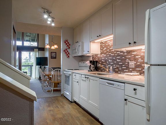 Check out this condo at the popular Inn at Otter Crest, an ocean-front resort located on 35 acres of beautiful forest with serene trails that take you to the beach. This condo has an updated kitchen and is one of the larger units with 2 bedrooms and 2.5 bathrooms. The Inn offers a heated ocean-front swimming pool with hot tub, saunas, tennis/pickle ball courts, gym, and playground. There's an on-site restaurant/lounge. HOA fees include all utilities and amenities. Put it in the hotel rental pool, live here full time or enjoy as a beach getaway! Sold furnished and turn-key.